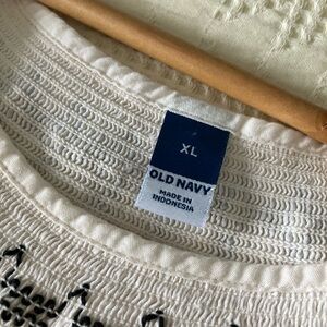 OLD NAVY Off White and Black Embroidered Boho Cotton Blend Tiered Dress Size XL