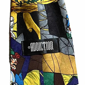 ADDICTION BLACK RED GREEN GIFTS Santa Christmas Silk St Nick Men Necktie tie in very good preowned condition.