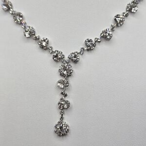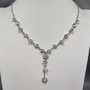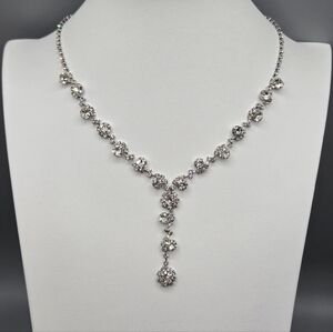 This stunning silver statement necklace is made with clear Swarovski Crystals in a floral Y design