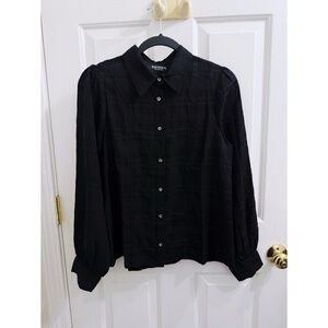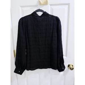 A chic plaid patterned button up top with sheer material and balloon sleeves. New with tags, size 4. Materials as pictured. Open to offers!