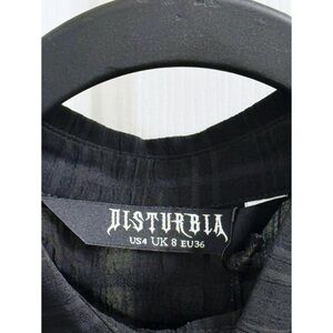 Disturbia Recluse Check Chiffon Button Up Shirt in Black