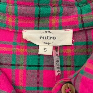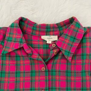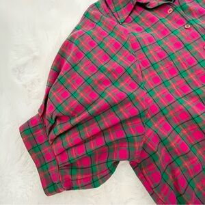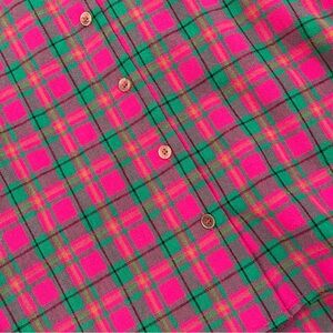 Vibrant raspberry pink and green plaid top