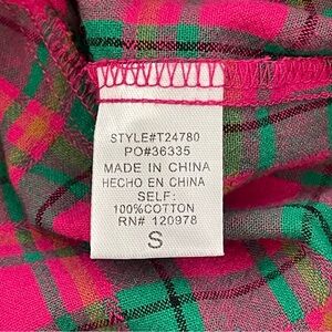 Entro Vibrant Puff Sleeve Hot Pink & Green Oversized Plaid Cotton Top