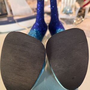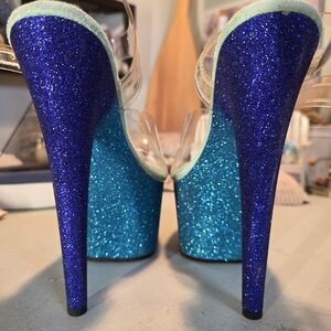 Step out in style with these stunning blue glitter platform heels. Perfect for adding a touch of sparkle to any outfit.