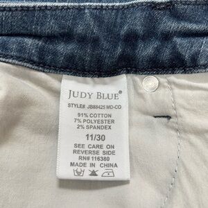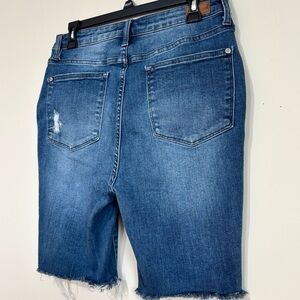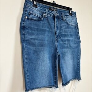 Judy Blue Y2K High Waist Raw Hem Bermuda Denim Blue Jean Shorts women's 11/30