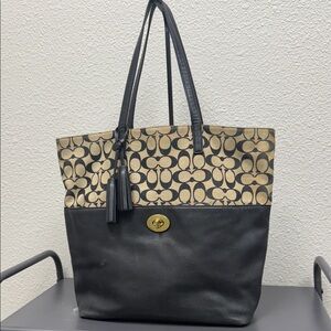 Coach Black and Tan Signature Tote