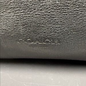 Stylish Coach tote with signature pattern. Black leather base and tan accents. Perfect for daily use.
