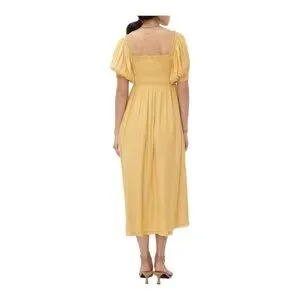 Hatch Elia Yellow Puff Sleeve Smocked Maternity Midi Dress Size L NWT