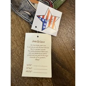 Jess & Jane Bow Wow long sleeve top features a whimsical dog graphic print with artistic "Bow Wow" lettering. Crafted from 100% cotton in the USA, this V-neck shirt showcases a dark base with vibrant pops of color and a unique cloud-like pattern in the background. The 3/4 length sleeves also carry the playful canine motif, making it a perfect piece for dog lovers seeking a comfortable yet expressive style. The neckline is finished with subtle contrast stitching for added detail.