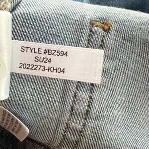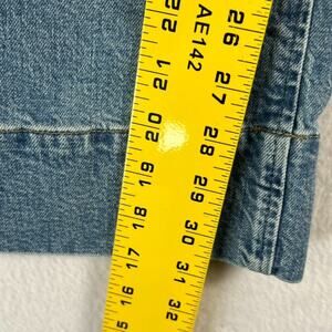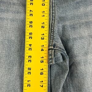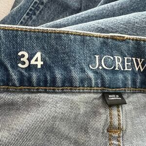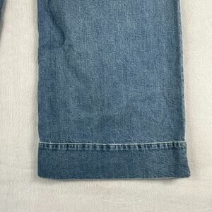 The product is a pair of J Crew women's jeans in size 34 with a high rise and wide-leg fit. These trousers are in a medium wash sailor style, made from a comfortable denim fabric with a 5-pocket design. The jeans feature a zip and button closure, and are machine washable for easy care. With a relaxed fit and solid blue color, these jeans are perfect for any season and are a versatile addition to any wardrobe.