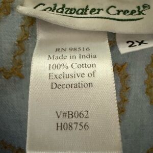 Coldwater Creek Blue and Gold Embroidered Shirt