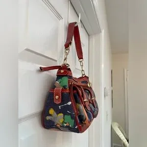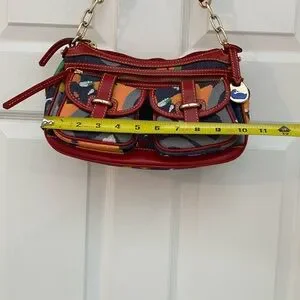 As with many of my bags I sell, this one was given to me as a gift and I never used it. It has been stored and needs to have an owner who takes her out to be seen! It’s a RARE paint splash “Banana Baguette” shoulder bag by Dooney. Features front pockets and durable strap. NWOT