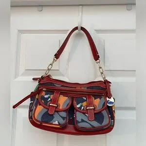Vintage Dooney & Bourke RARE Red Paint-splash Small Banana Baguette Bag NWOT
