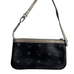 Stylish MCM wristlet in black with silver accents. Perfect for any occasion.