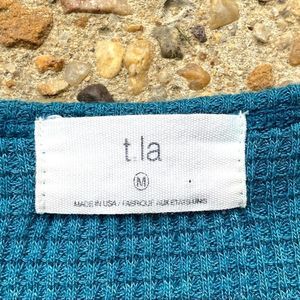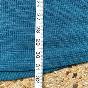 Anthro t.la blue/green teal sheath style dress with notched neckline in a thermal waffle knit texture.