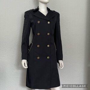 -A double-breasted front adds classic style to this trench coat, while white contrast stitching on the shoulders and sleeves takes this trench coat to a new level of wardrobe staple