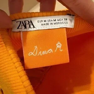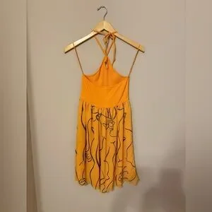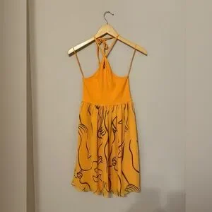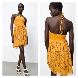 Zara x Dina Bukva Designer Drawing Cutout Halter Mini Dress Orange Black Medium