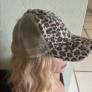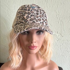 Stylish leopard print cap for women. Perfect for adding a wild touch to any outfit.