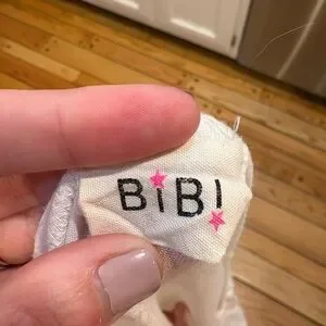 Bibi Cream fabric tshirt with pink 'BiBi' text and pink text. Stylish and simple. Vacation vibes and brunch ☀️. Beer 🍺 Lime 🍋🟩Sunshine ☀️