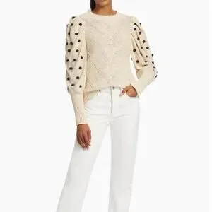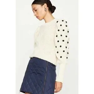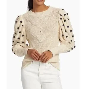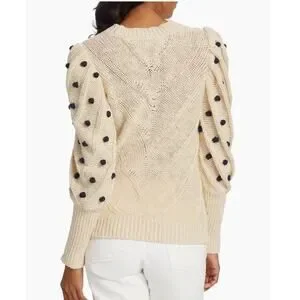 MARIE OLIVER Bridget Knit Bauble Detail Gathered Sleeves 100% Cotton Sweater S