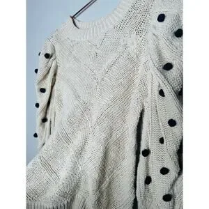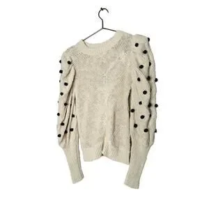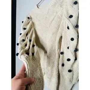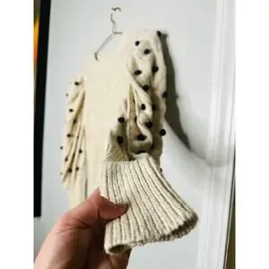 Marie Oliver Bridget Knit Bauble Detail Gathered Sleeves 100% Cotton Sweater in size small is a stylish and unique knitwear piece. Made from 100% cotton, this sweater offers both comfort and breathability. The standout features are the bauble details that adorn the sleeves, adding a textured and playful design element. The gathered sleeves give the sweater a voluminous and feminine silhouette, making it a great statement piece. This sweater is perfect for adding a touch of personality to casual or semi-dressy outfits, ideal for cooler weather.