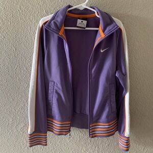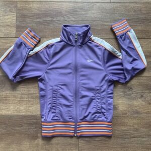 Nike Girls Youth Sz Small Full Zip Purple White & Orange Stripes Track Jacket