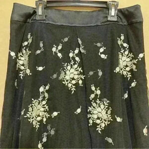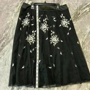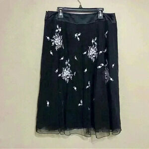 NWOT Ann Taylor Black - White Floral Flare Whit Embroidered Flowers Skirt Size 6