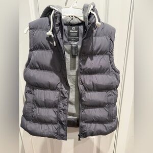 Stay warm and stylish with this gray hooded puffer vest. Perfect for layering, it offers comfort and versatility for any casual outing.