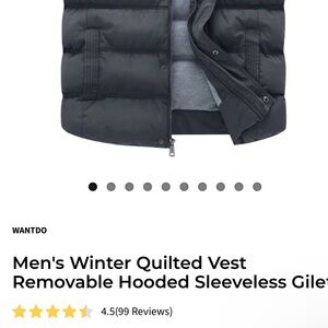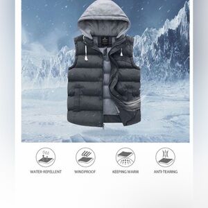 Men's Winter Quilted Vest Removable Hooded Sleeveless Puffer Vest Size M