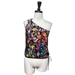 Made of 100% silk. Features one shoulder and a drawstring at the waist. Laying flat measures 16" from pit to pit, and 20" shoulder to hem. Be sure to check out all of my other BCBG listings.