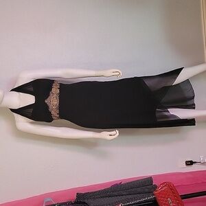 VTG TABOO Grecian Black Assymetric Angled Halter High Waist Castlecore Dress
