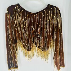 Brown Velvet Top & Shirt with Gold Beading 2 Piece Set Vintage Dance Outfit