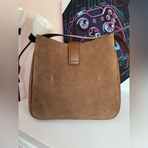 Chic and versatile Coach shoulder bag. Crafted in rich dark brown suede. Ideal for everyday elegance. Minor signs of wear on the exterior. Inside super clean. No stains or tares.