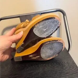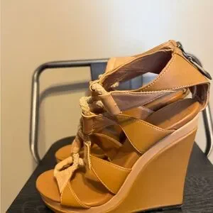 DVF Diane von Furstenberg Camel Leather Rope Wedge Sandals 7M