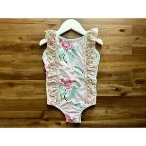 NWT SweetHoney Moxie One Piece Swimsuit Palest Pink Floral Ruffle Preppy 5
