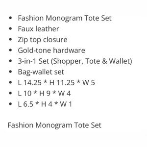 NEW 3PC Fashion Monogram Tote Set