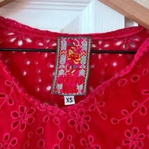 Johnny Was Pink Fuchsia Eyelet and Embroidery Top