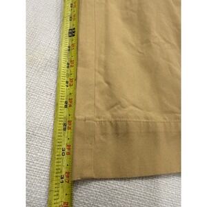 Wide-leg trousers crafted from 100% cotton in a versatile tan khaki hue. These high-rise pants feature a sophisticated belted waist with a matching fabric buckle, front pleats, and functional side pockets. The back is designed with buttoned flap pockets for a tailored touch. Designed with a long 31-inch inseam, these trousers offer a flowy, structured silhouette perfect for office wear or elevated casual styling.