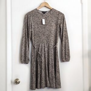 Banana Republic Petite Cheetah Print Belted Knit Fit and Flare Dress