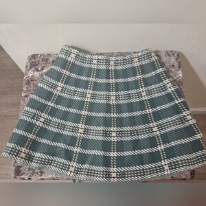 This stylish plaid skirt features a classic green and cream design, perfect for adding a touch of elegance to any outfit.