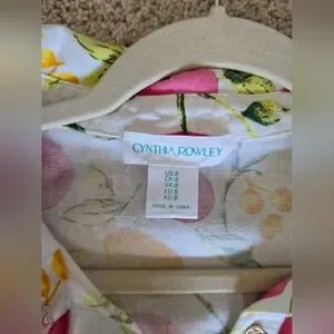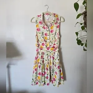 Cynthia Rowley Linen Blend Dress size 8 women's Sleeveless Button Front Fruit Print Belted. Beautiful dress. No flaws
