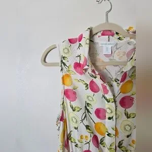 Cynthia Rowley Linen Blend Dress 8 Sleeveless Button Front Fruit Print Belted