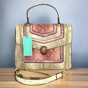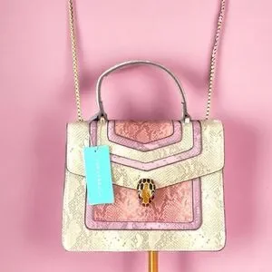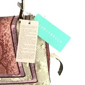 CHRISBELLA NWT CROSSBODY SATCHEL HANDBAG Pink PURPLE SNAKE Leather