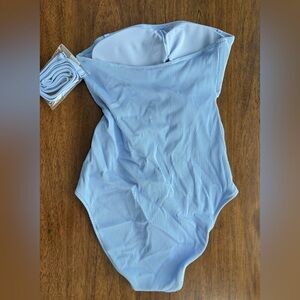 Chic light blue swimwear. Ideal for summer fun. Original liner intact. Also has halter strap if needed.