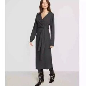 Modern Citizen Dark Grey Long Sleeve Wrap Sweater Dress