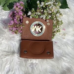 There is wear noted to the metal and to the corners. And some slight cracking on the inside fold pocket.