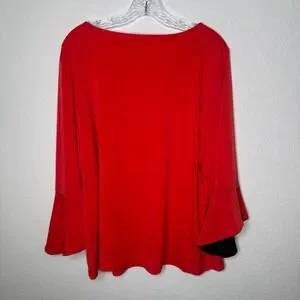 Susan Graver Red Bell Sleeve Boat Neck Top XL Women's