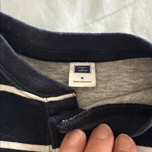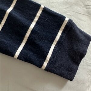 Cozy gray sweater with a bold tiger patch. Features a full zip and striped sleeves. Ideal for layering. Also a navy striped long sleeved shirt . Also a size 5