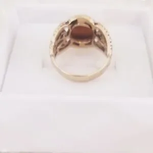 This vintage-inspired ring showcases a captivating brown gemstone set in an intricately designed gold band. A perfect accessory to elevate your style.