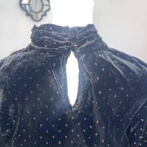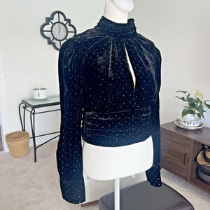 Zara Women Velvet Crop Long Sleeve Sparkle Top Size M High Neck Puff Sleeve